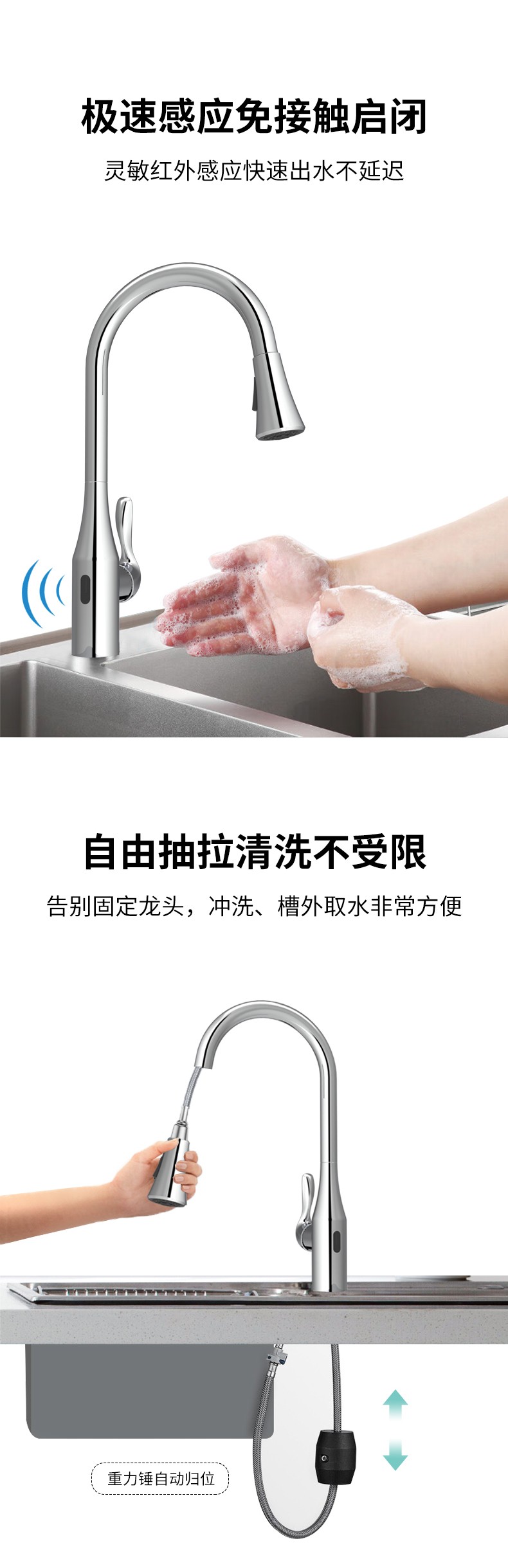 FK8364 感應(yīng)雙控廚房抽拉龍頭